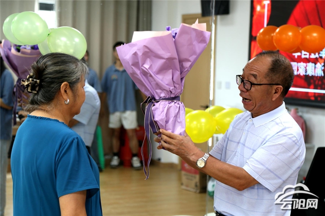 在文艺节目的间隙,活动还特别安排了两对金婚夫妻上台,与在场的所有人共同分享他们相识、相知、相爱的温馨故事,随后丈夫深情地向妻子送上了一束鲜花。