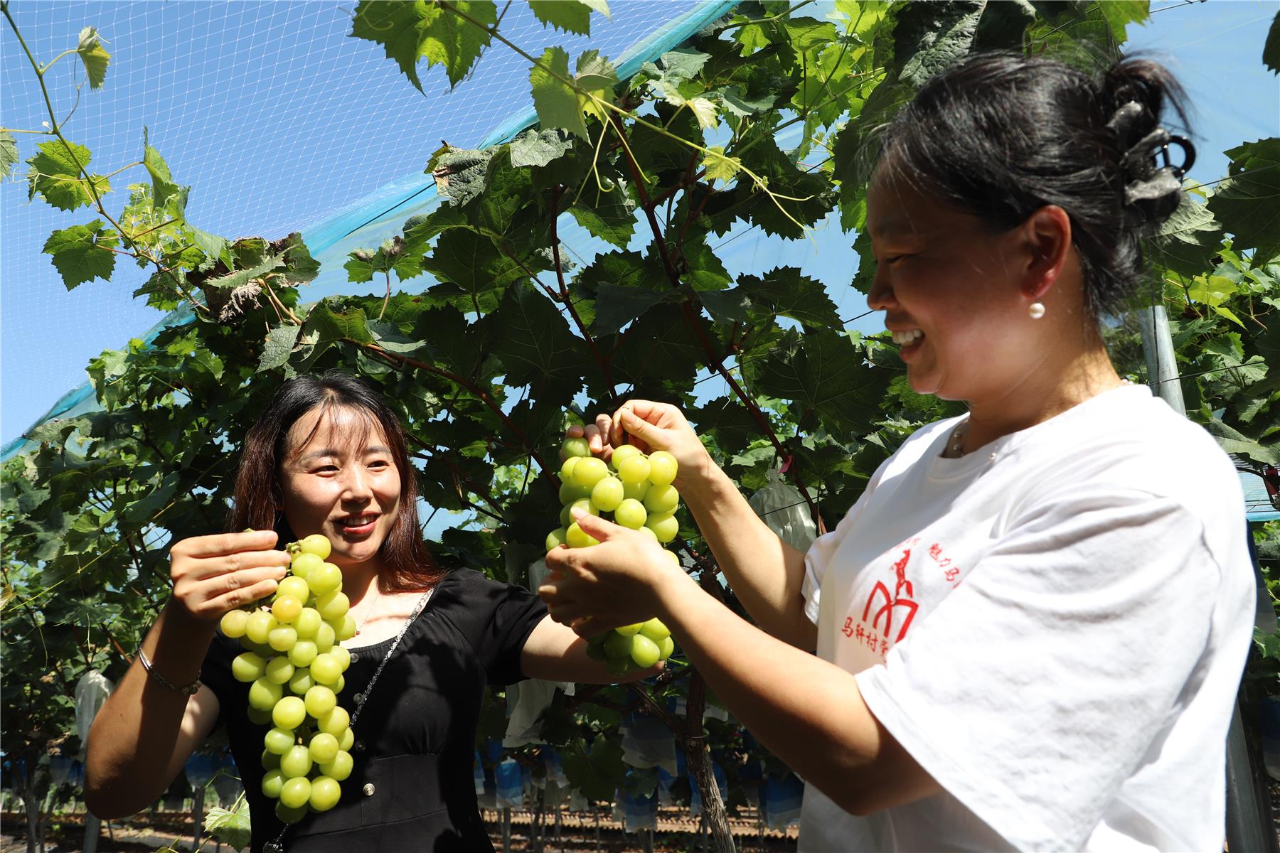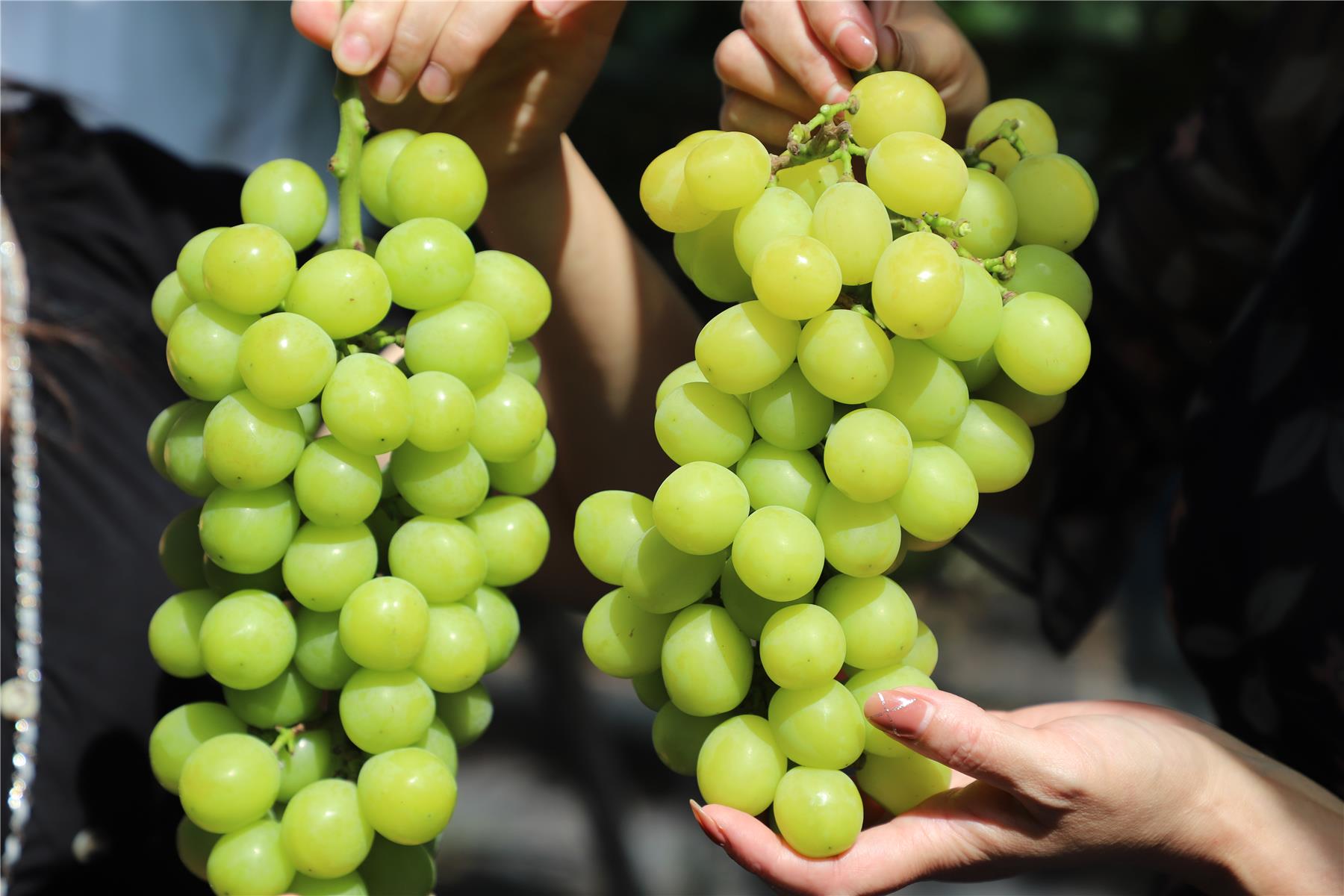 “我们每年都跟朋友来这里采摘游玩,这里的葡萄便宜好吃,皮薄肉厚,汁多味甜。”吃着刚摘下的葡萄,丁女士点赞道。