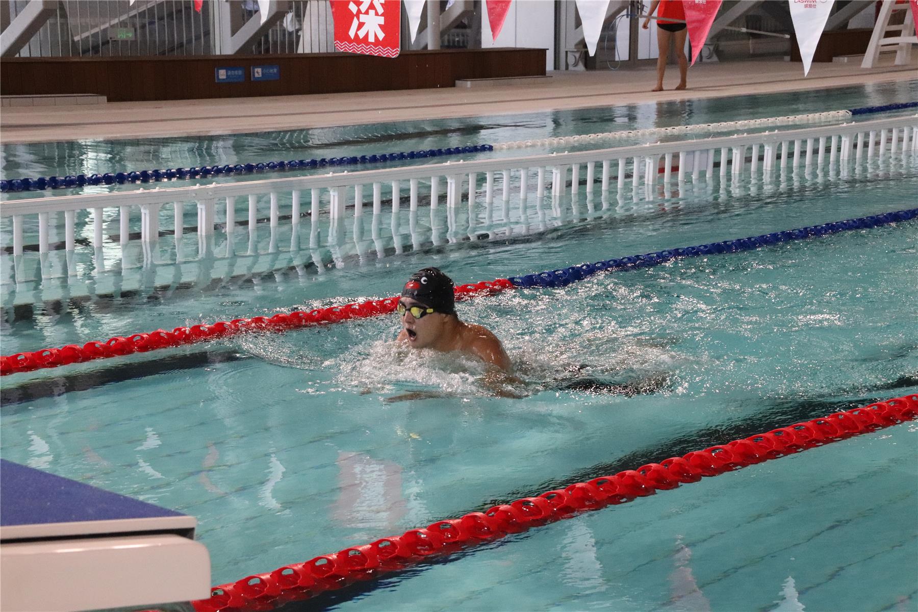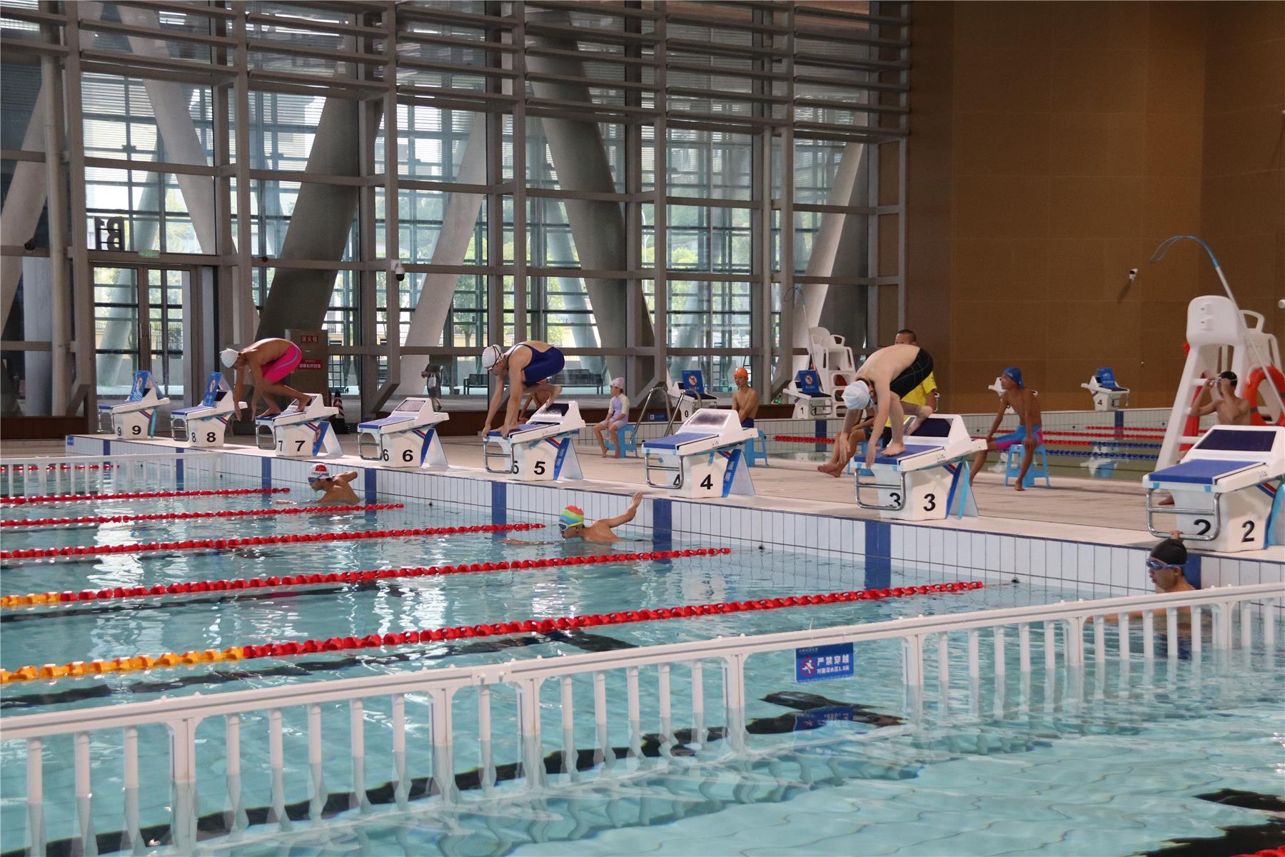 活动现场,伴随着阵阵响亮的发令声,选手们纵身一跃进入水中,在池中激起朵朵浪花。各泳道的选手们以最佳状态全力以赴游向终点,展示出了过硬的技巧和蓬勃的生命力。