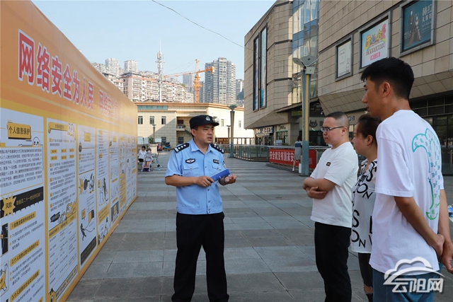 云阳网讯(记者 陈慧)网络安全,生活安心。9月12日,县公安局紧扣“网络安全为人民、网络安全靠人民”这一主题,组织民辅警在城中城广场开展2024年网络安全宣传周暨法治日宣传活动。