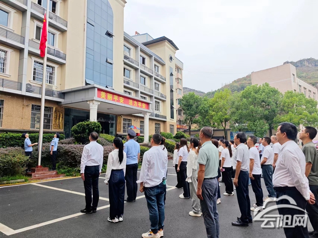 伴随着雄壮激昂的《义勇军进行曲》前奏响起,全体干部职工肃穆而立,目光炯炯,注视着五星红旗缓缓升起,心中激荡着对祖国的无限热爱与崇高敬意。全体人员满怀崇敬之情,面向国旗全程凝视、行注目礼,送上对伟大祖国最美好的深情祝福。镇党委书记在升旗仪式上强调,全体干部职工要提振精气神,立足岗位精细管理,持续用力为民服务,助力乡村振兴,把对伟大祖国的热爱转化为砥砺前行的工作动力。