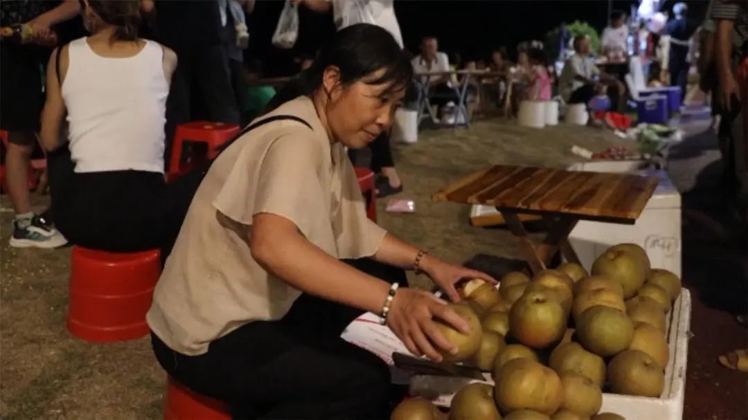 人气的聚集也带来蓬勃商气,利用毗邻的地理优势,不少周边村民最先捕捉到这些商气,他们纷纷在公路沿线摆上小摊位,亮出各类农家瓜果蔬菜,供乘凉市民挑选。水口镇佛安村村民周树香说:“这儿人多、热闹,边歇凉就边卖,离家里也近,只要二十分钟就下来了。我已经在这里摆摊一个多月了,以前是卖桃子,现在就卖梨。”
