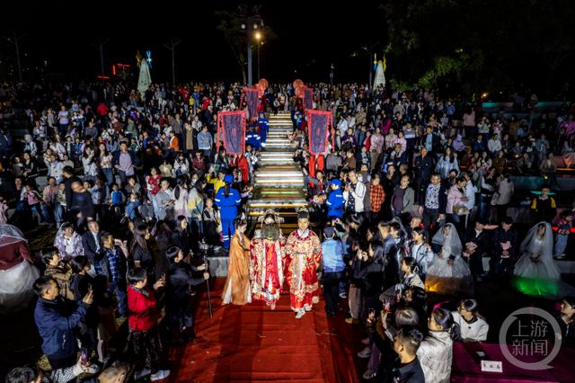 “凤冠霞帔的中式婚礼,是不少女孩子的梦中婚礼,以前只在电视上过,今天现实看到的不一样,更震撼更漂亮,感受到了温馨,也很快乐。”市民王懿全程跟着花轿游园,眼前的中式婚礼让她眼前大亮,现场不少观众也纷纷拿出手机拍照留存。