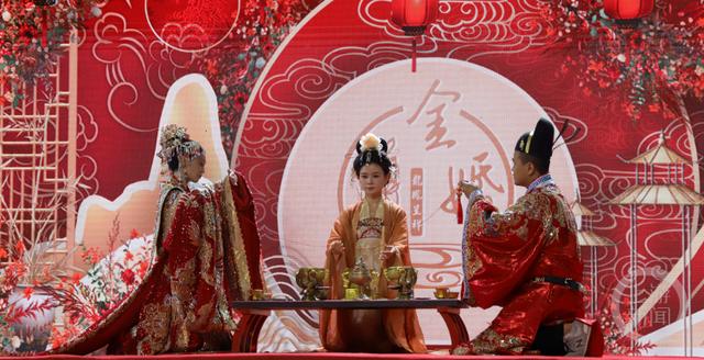 国潮婚典秀生动再现了传统婚俗文化中梳妆礼、沃盥礼、同牢礼、合卺礼、婚礼、执手礼等礼仪环节,向在场观众呈现了一场跨越时空的婚礼盛宴。