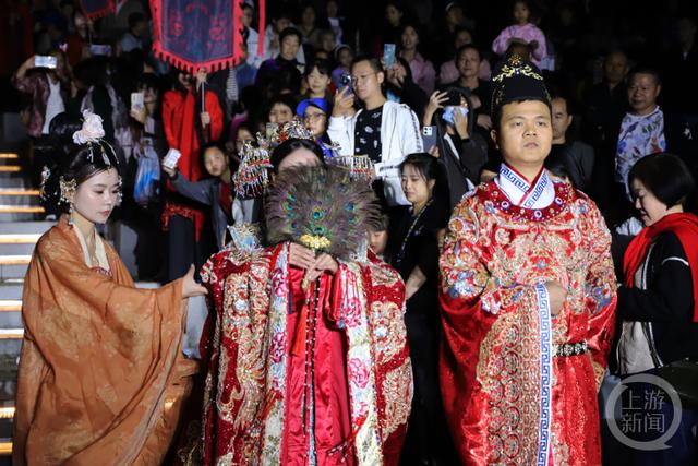 国庆假期,云阳县举办了一场别开生面的国潮婚典秀,再现中式传统婚俗的深厚文化底蕴,在做好文化传承和引导的同时,还融合西式婚礼要素,帮助30对金婚夫妇补上了人生中重要的婚礼仪式。