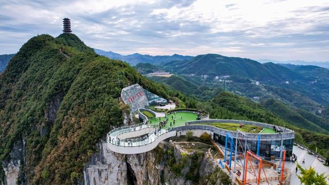 ▲云阳龙缸景区,游客登上1010米的云端廊桥,饱览大好河山。通讯员 谭启云 摄