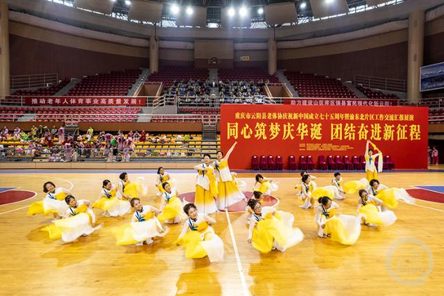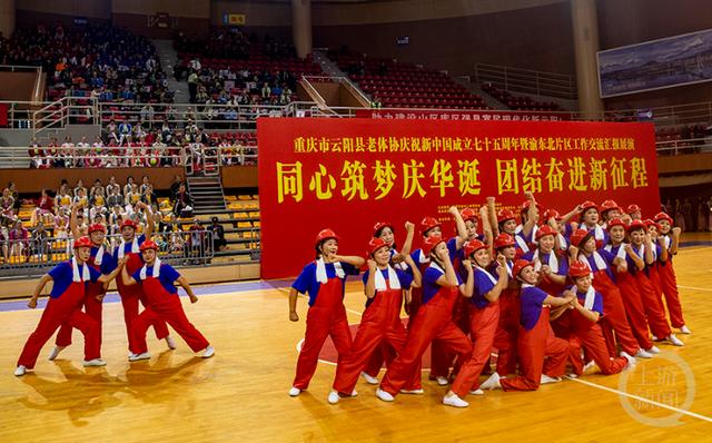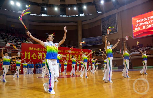 青松不老涌豪情,晚菊傲霜扬风采。10月12日,云阳县老体协庆祝新中国成立七十五周年暨渝东北片区老年体育工作交流汇报展演活动在云阳体育馆举行,云阳千余名中老年人展风采。来自万州区、开州区、梁平区、忠县等渝东北片区的老体协相关负责人出席。