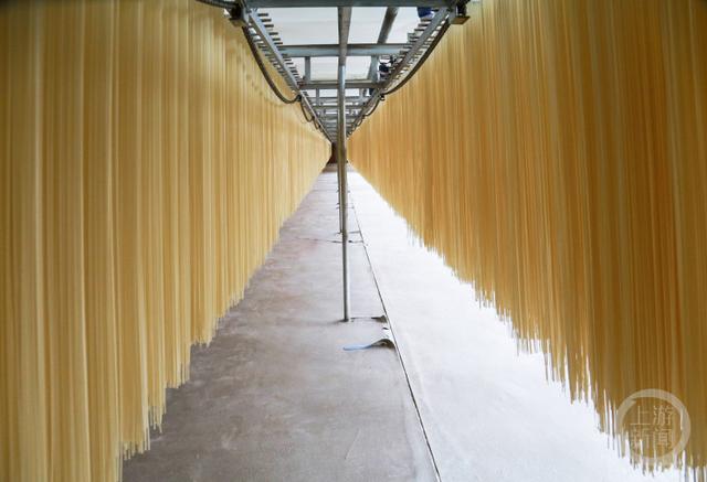 9月27日,在云阳县巴阳镇巴阳村杠子面传习所,刘益展示着做杠子面的工序。和面、醒面、压面、除皮、切面、晾晒……刘益一边解释着。“面团要反复压打300多次。”祖辈从事制面行业的刘益从小耳濡目染,他深知只有做成干面才能把杠子面推广得更远。