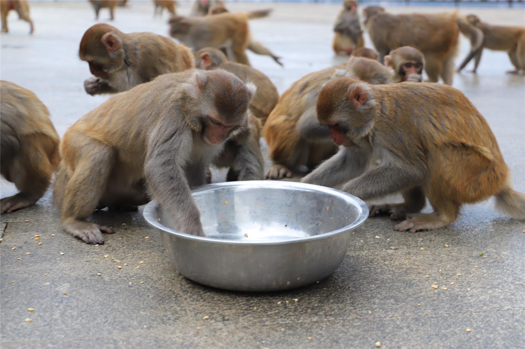入冬过后气温降幅较大,龙缸景区植物嫩芽、野果减少,猕猴们面临粮荒,为了让猴子们不挨饿。这两天,景区新增多处猴群投喂点,设置专业饲养员不定期给猴群投喂玉米、水果等食物,帮助猕猴顺利过冬。