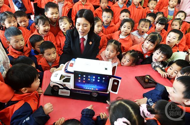 “车载便民法庭”功能启动观摩环节,幼儿园的娃娃们对“车载便民法庭”非常感兴趣。