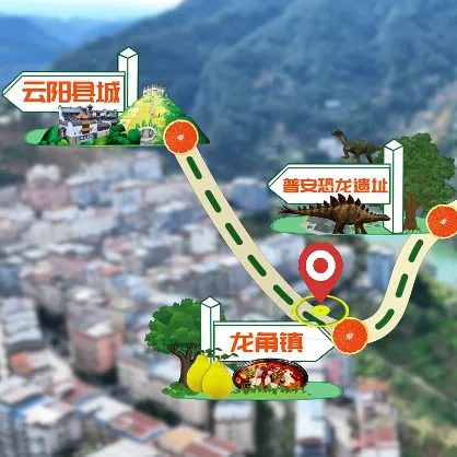 “东西南北‘橙游云阳’精品乡村旅游路线”由重庆江来集团推出,共有四条沿江旅游路线,分别是长江沿线、澎溪河沿线、汤溪河沿线、磨刀溪/长滩河沿线。这四条旅游路线,以“橙”为媒,以云阳县城为中心,串联起了周围的十余个乡镇。游客可以吃红橙、品美食,游览沿线秀丽的自然风光和历史人文景点。