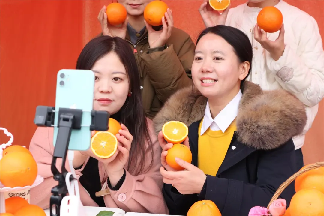 主播们不仅展示着红橙饱满的果实、鲜艳的色泽