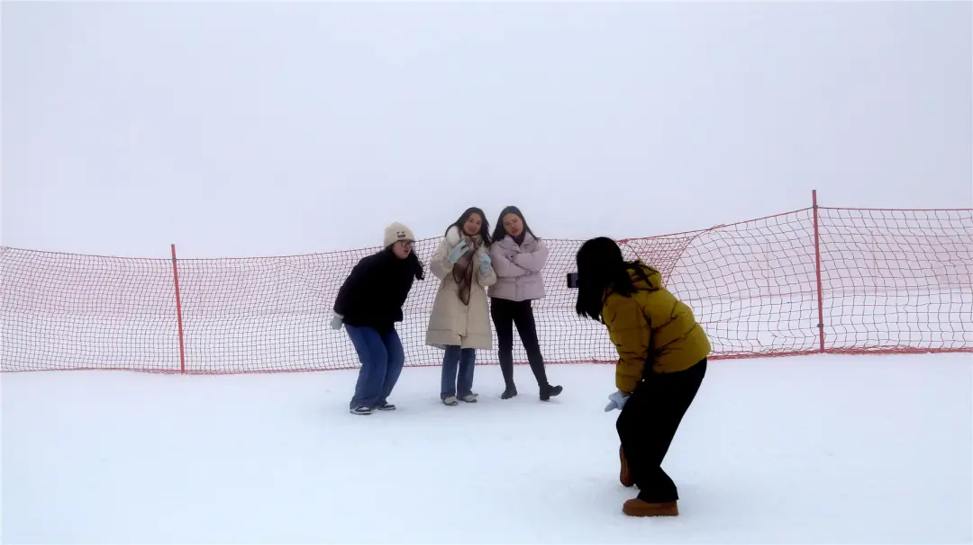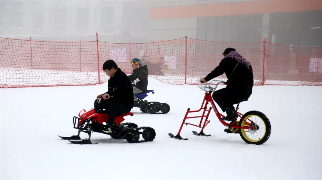 游客们乐在其中,尽情享受着冰雪带来的乐趣