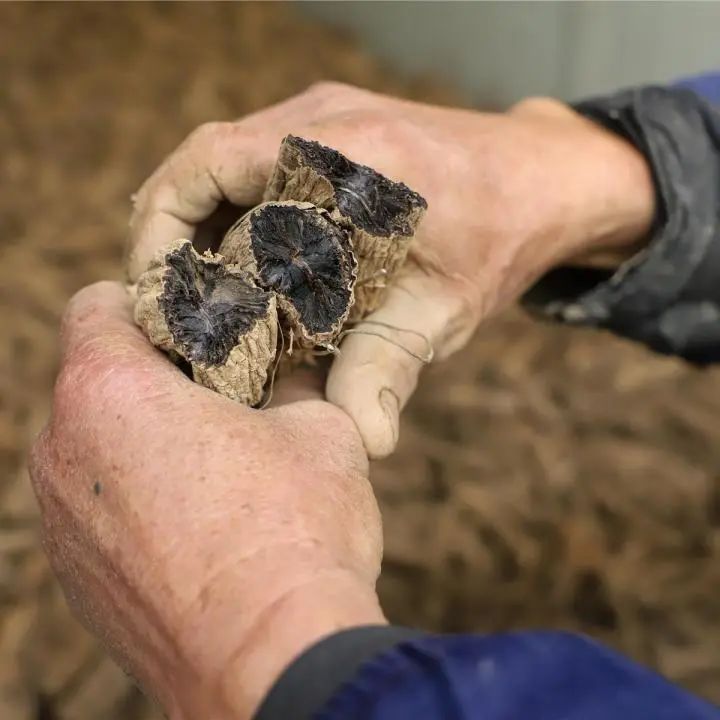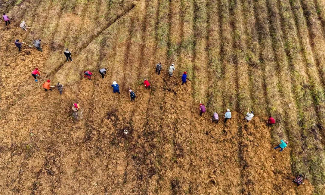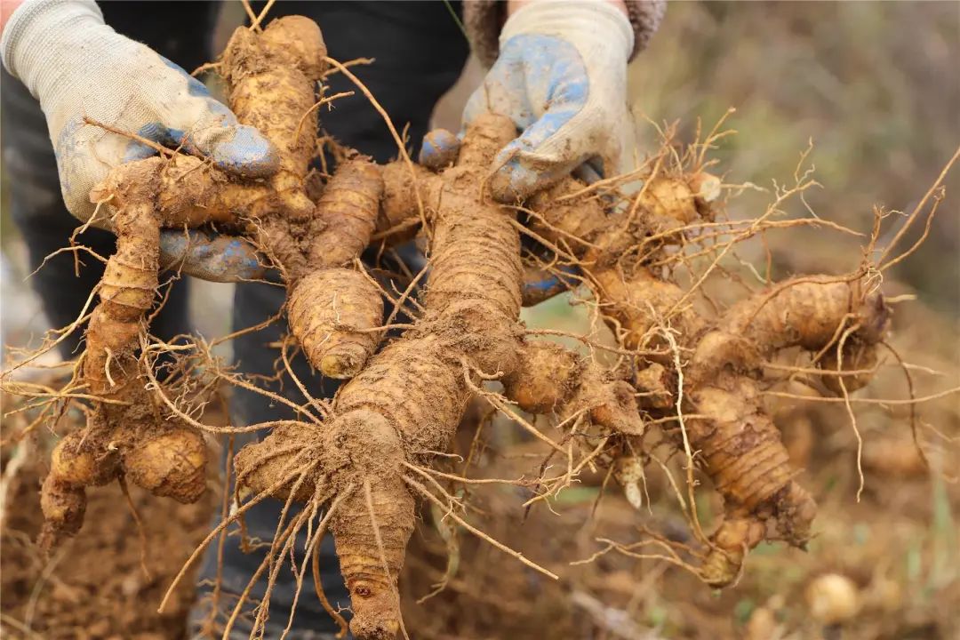 东阳村村民杨广珍手中拿着一株七八斤重的黄精