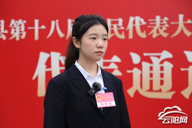 很荣幸能够以青年观察员的身份列席人大会,于我而言这无疑是一次意义非凡的体验。近年来,云阳为大学生提供了很好的就业平台,一系列好政策为我们就业、创业都奠定了坚实的基础,坚定了我在学前教育路上稳稳前行的信心,作为青年一代,我将关注社会发展,勇争时代潮头,展现青年担当。