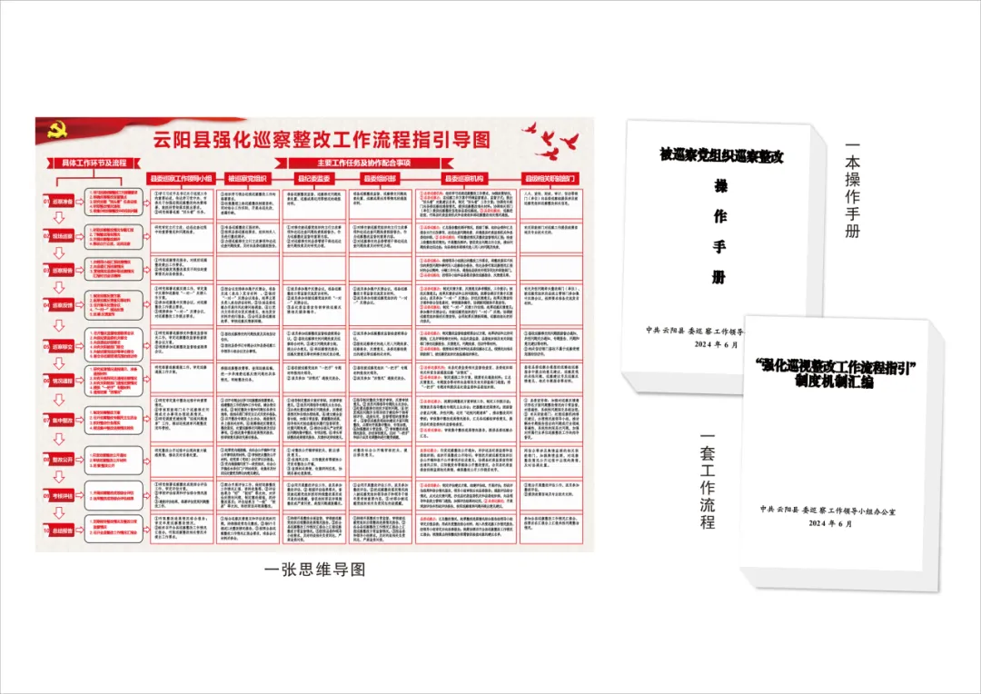 云阳县以“强化巡视整改工作流程指引”试点为契机,迭代升级巡视巡察整改工作架构,探索建立19项制度机制,形成“一套工作流程、一张思维导图、一本操作手册”云阳整改样板,推动730个巡察反馈问题和3个巡视清单问题高质量整改销号,11篇试点工作经验信息被市级以上媒体采用,相关案例被中央巡视办刊载推广。