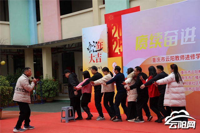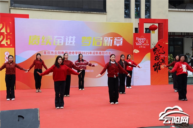 云阳网讯(实习生 程雨涵 曾海阅)1月17日,云阳教师进修学院举行以“赓续奋进 梦启新章”为主题的2025年迎新春联欢活动,教师们欢聚一堂,共迎新春佳节。
