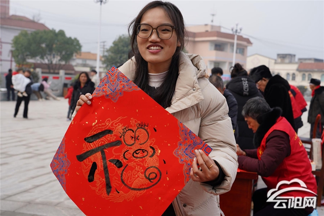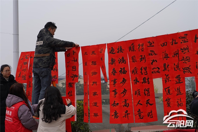 当天,志愿者们还走进脱贫户家中,为留守的老人送去祝福满满的春联,送上新春的美好祝愿和亲切问候。龙角镇五龙社区脱贫户余国云说:“志愿者为我们贴春联,感觉年味越来越重,日子也越过越好。”