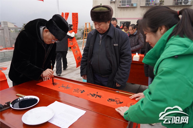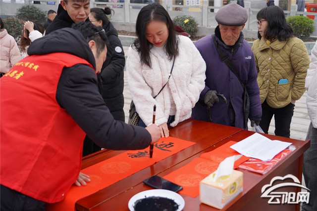 云阳网讯(记者 谭启云 熊美玲)随着新春佳节临近,家家户户年味儿正浓。连日来,县文联书法爱好者们深入乡镇(街道)开展写春联、送祝福活动,免费为当地群众书写春联,送上新春的祝福。