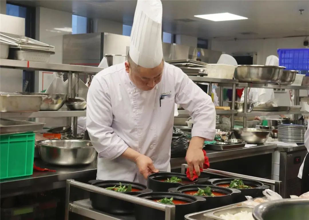 “今年酒店的团年饭大概2000桌,这就需要提前规划好所有东西。”面对如此庞大且复杂的工程,对王强和他的团队来说,无疑是一场巨大的挑战。为确保每一位顾客都能品尝到美味佳肴,王强需要提前把握好每一个细节,把控好上菜节奏。既不能让顾客等太久,又不能让菜品一股脑全上,要让每一道菜都保持最佳的“锅气”与口感。