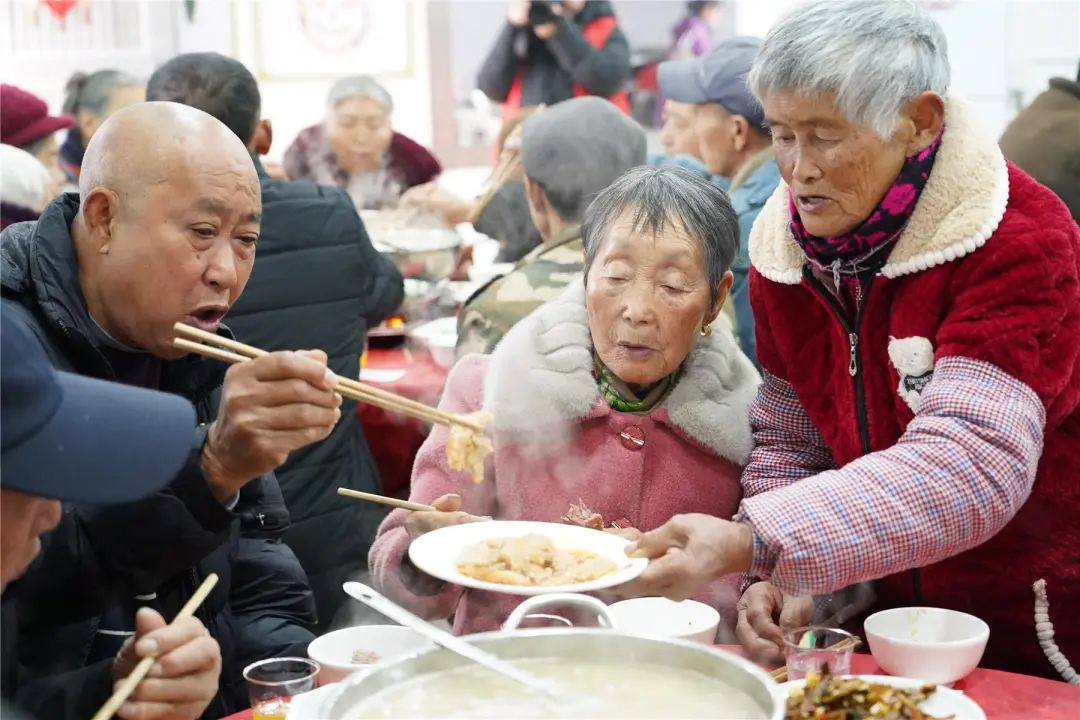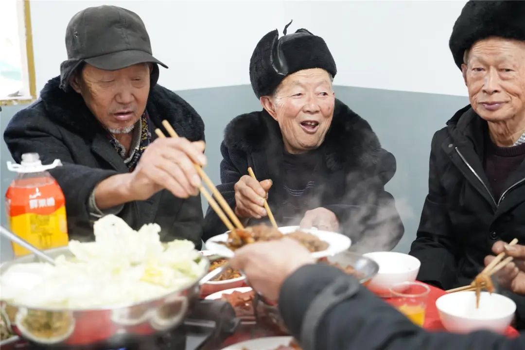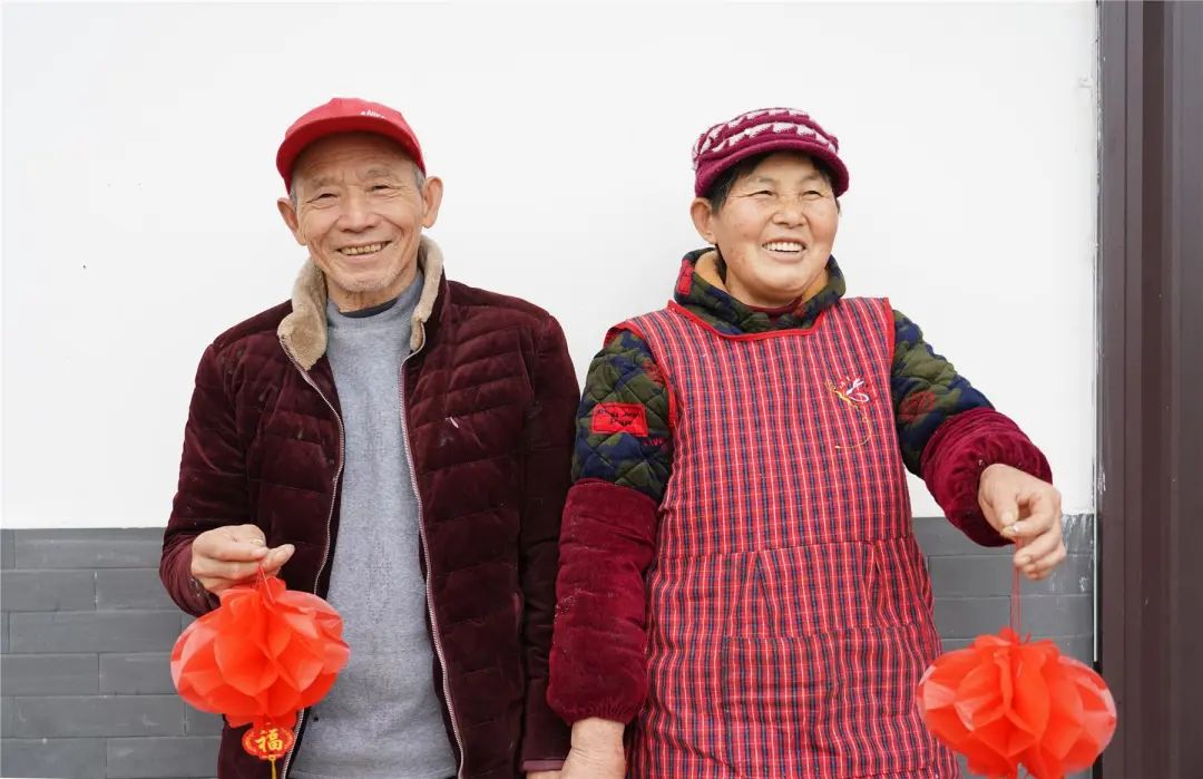 只见老人们手拿灯笼、看着镜头笑得开怀