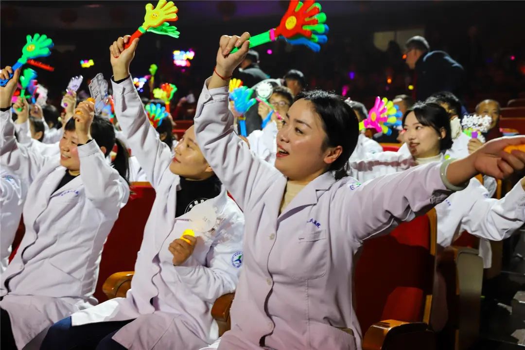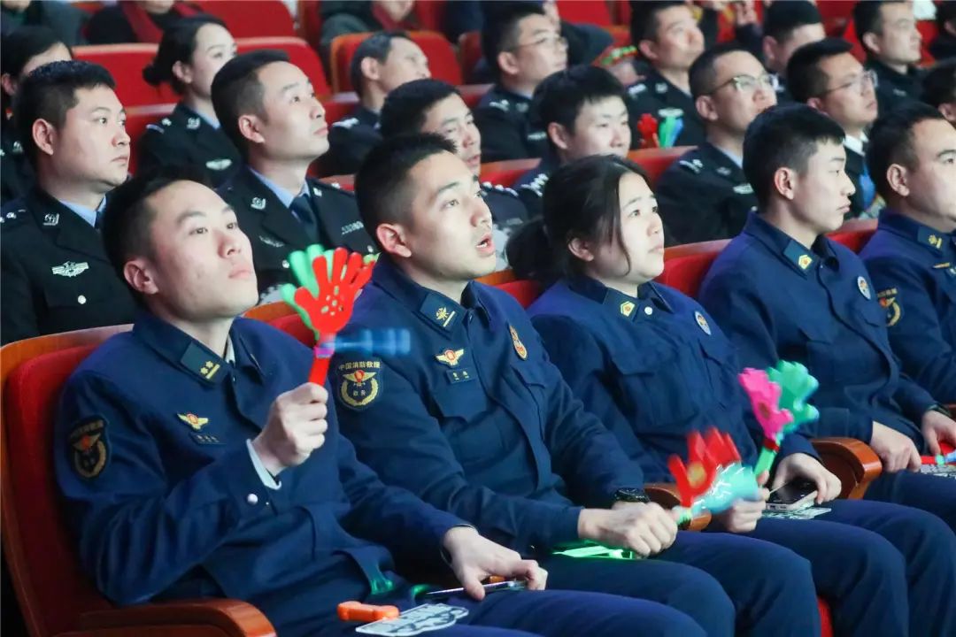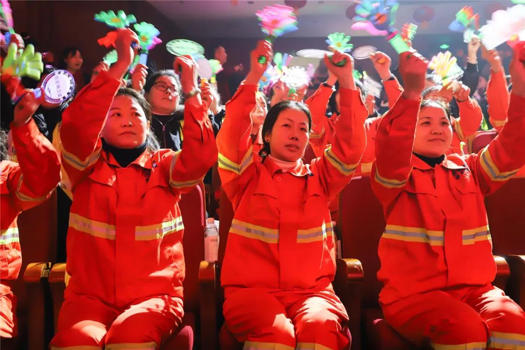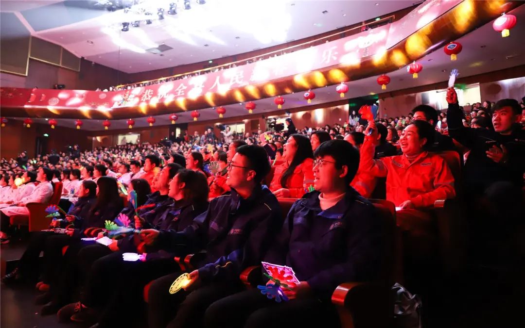在春晚演出正式开始之前,《众人划桨开大船》暖场节目,来自县经信委系统的后勤保障者、县公安局的城市守护者、县住房城乡建委系统的城市卫生维护者、县卫健委系统的健康守护者四个方队,他们挥动着手中的荧光棒,跟着音乐节奏一起摇摆,直接就将春晚氛围感拉满。