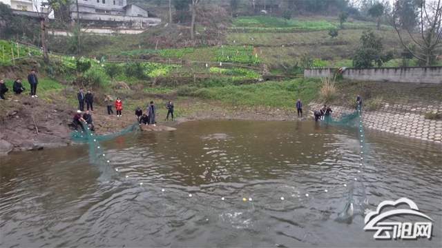 云阳网讯(记者 谭启云 熊美玲)“撒网了,起鱼啦!”伴随着围观村民阵阵的欢呼声,渔网缓缓露出水面,被网住的鱼儿在水中活蹦乱跳。1月25日,农历腊月二十六,在泥溪镇泥溪社区新生水库,养鱼户张春林开始拉网捕鱼供应春节市场,“捕”来好日子,“捞”出新期盼,收获丰收的喜悦。