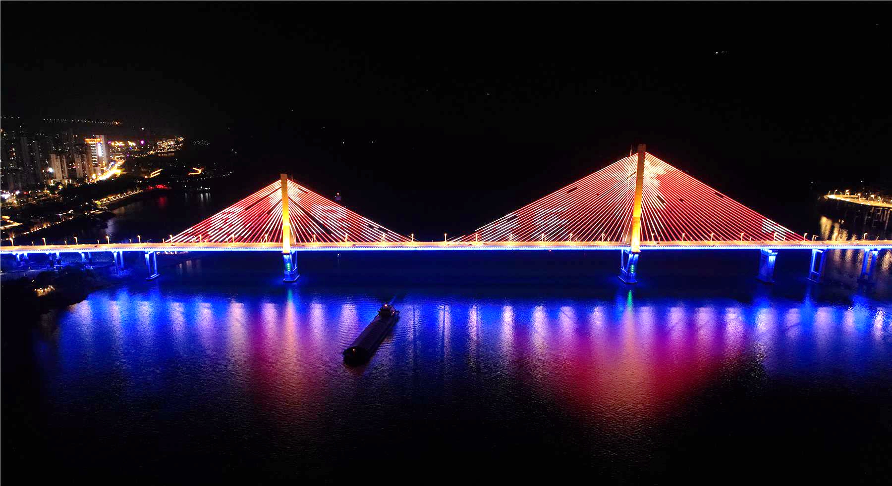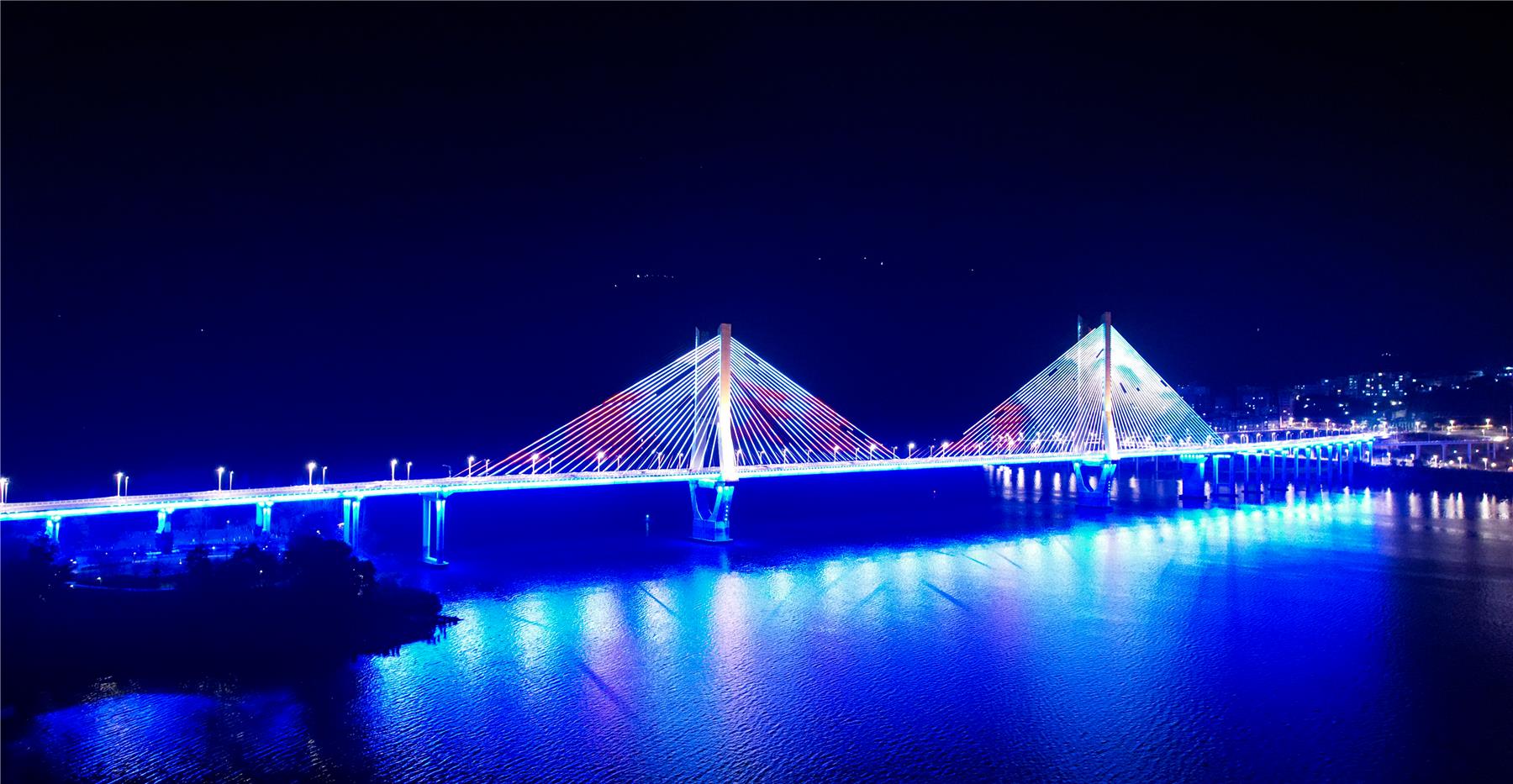 当夜幕降临,华灯初上,云阳县长江大桥,上万余盏景观灯具将大桥装扮一新,大桥悬索两侧霓虹闪烁,五彩斑斓,以桥为屏,用灯光为墨,科技感与时尚感交融的灯光秀给城市增添了一道亮丽的风景线,吸引了不少市民纷纷驻足观看。