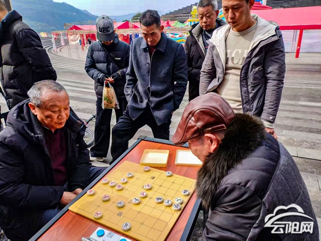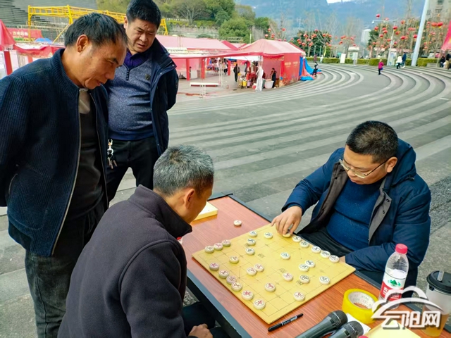 云阳网讯 (记者 刘兴敏)“灵蛇跃新春,棋韵聚两江”,2月3日,群众象棋擂台赛在云阳县两江广场举行,回家过年的游子、走亲访友的客人以及城区的100余名象棋爱好者参加了比赛,为春节增添了一抹亮色。