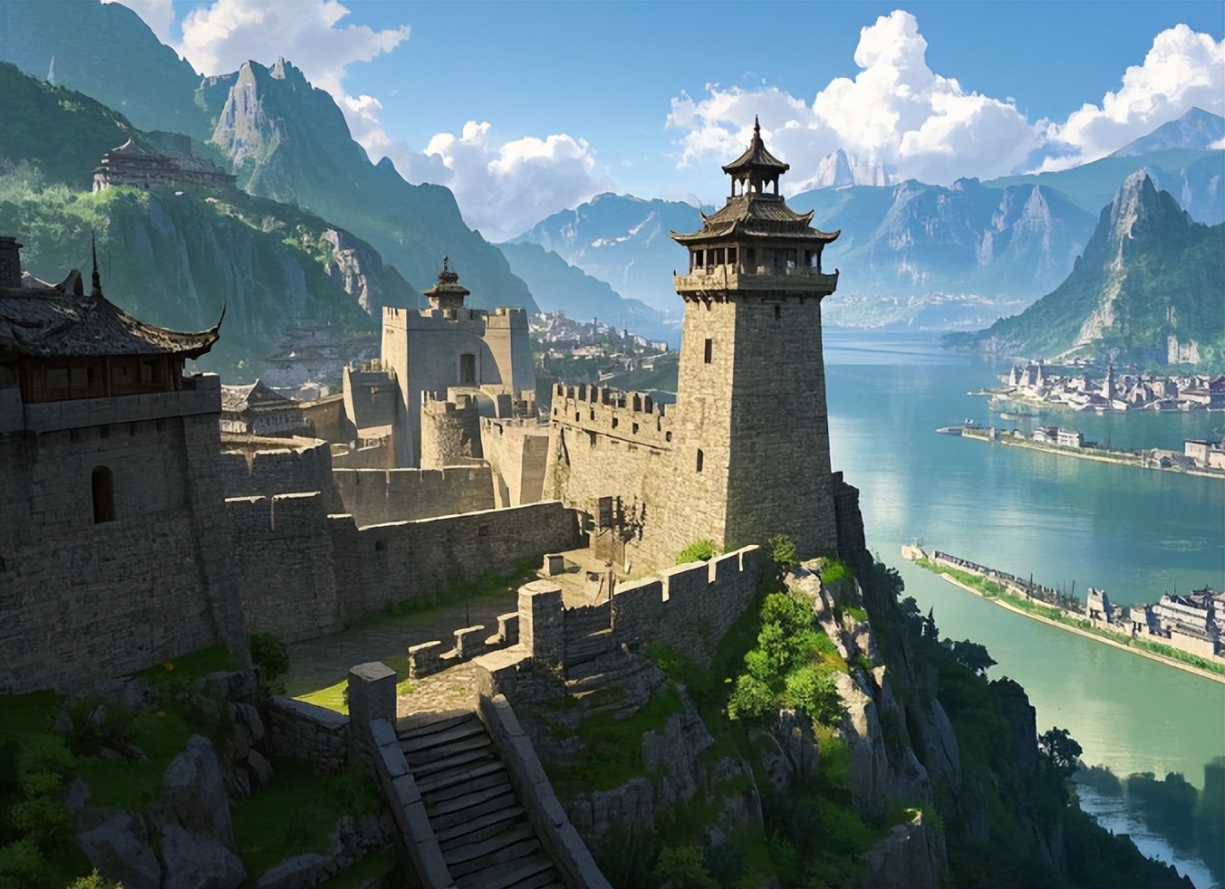 磐石城高耸于山巅,城墙厚重坚固,仿佛一位屹立不倒的巨人。城内的古建筑群错落有致,石阶上布满了岁月的痕迹。站在城墙上,可以俯瞰整个云阳县城,长江如一条银带蜿蜒而过,远处的青山连绵起伏。