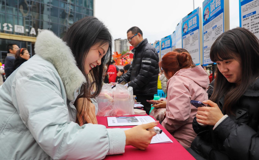 “将就业服务窗口前移,巧用商圈‘烟火气’,为就业服务‘聚人气’,推动用人单位与求职者双向奔赴更‘接地气’。”县创业就业公共服务中心副主任张晰普表示,近年来,已陆续在彩云梯步行街、滨江购物公园商圈、金科口福街商圈等人流量大的商场举办了各类主题的专场招聘会,为每一位求职者提供切实便利。