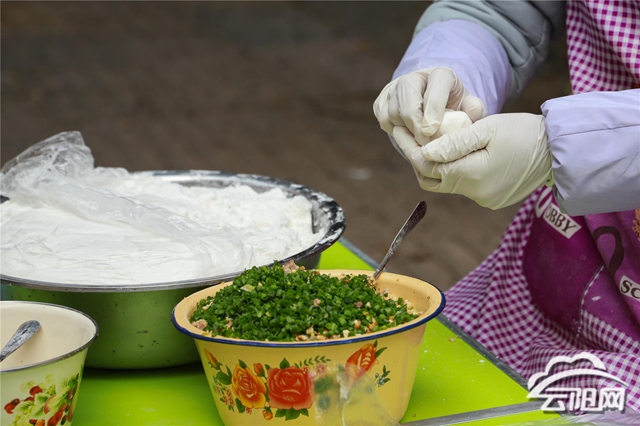 在金科世界城口福街,陈贞英正在自己的摊位上制作汤圆。只见她熟练地揪一块面团,将提前制作好的馅料包进去,再双手搓圆,只需几十秒,一颗手工汤圆便制作完成。