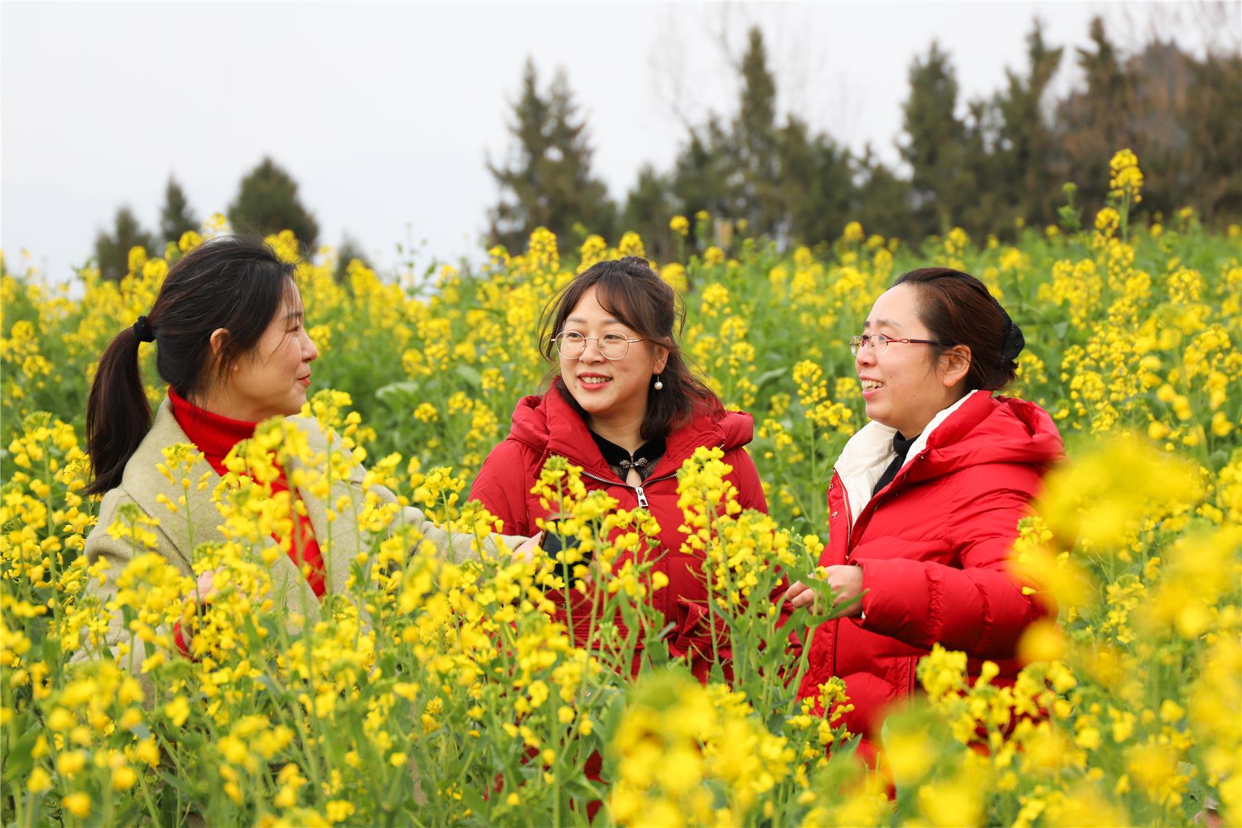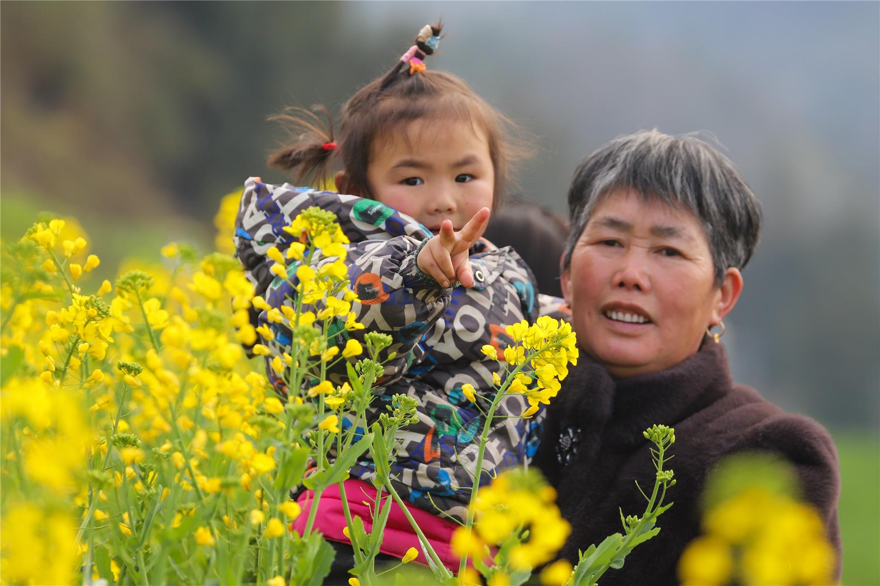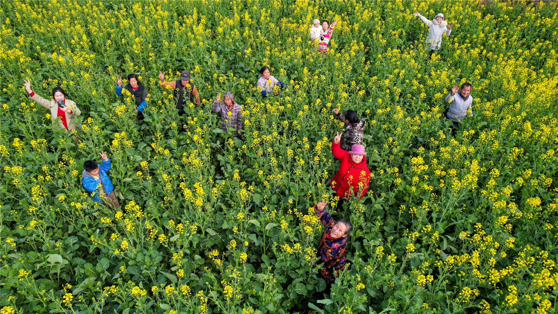 在油菜花田里,金灿灿的花朵随风摇曳,形成了一片金色的海洋。微风拂过,花香四溢,沁人心脾,令人流连忘返。不少游客穿行在田埂上、置身于花海间,相互拍照,用镜头定格春日美景。正带着孙女赏花的张正琼说:“看到一片片的油菜花,很舒服,很漂亮。”