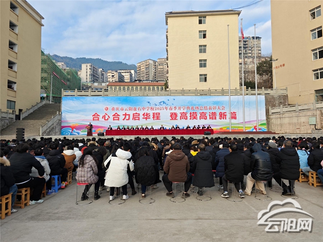 云阳网讯(记者 王月园 向鹏城)2月21日,盘石中学2025年春季开学典礼暨总结表彰大会在学校操场举行。全校师生精神抖擞,齐聚一堂,共同迎接新学期的到来。