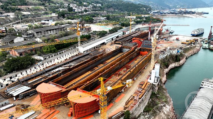 目前,长江航运发展呈现出韧性更强、量质齐增的良好局面。长江航运今年将推进水系连通成网,打通内河航运堵点卡点,全面实施智慧长江建设,推动航运绿色转型,提升运输服务能力,这也为云阳县船舶装备智造提供了更多可能。在云阳县民强船舶制造有限责任公司,船舶建造同样如火如荼,3艘新能源船舶已初具雏形。
