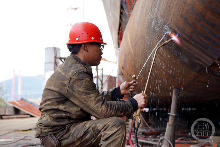 “江海直达船对焊接精度、装配工艺、材料验收等环节要求极高,仅打磨工序就需要4名专业技工全程跟进。我们也引进了专业技术人才和设备,全力以赴完成订单。”渝鑫船务有限责任公司副总经理叶平说道。