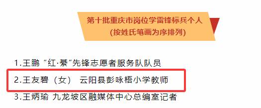 第十批重庆市岗位学雷锋标兵