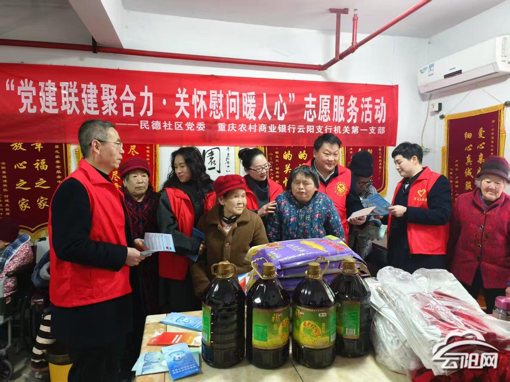 云阳网讯(记者 丁鑫)3月10日,青龙街道民德社区携手重庆农村商业银行云阳支行机关第一党支部,共同走进了“温馨之家”养老院,举办了一场以“党建联建聚合力、关怀慰问暖人心”为主题的志愿服务活动。