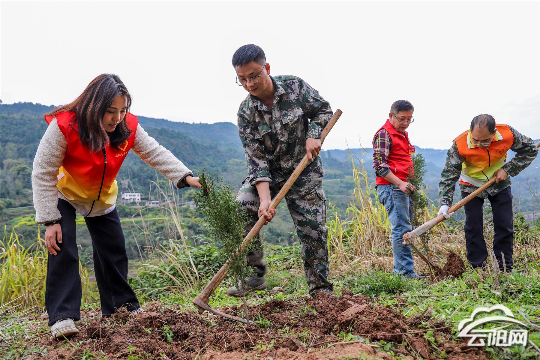 "树坑规格要确保深30公分,宽30公分,遇到碎石必须清理干净。"养鹿镇林业站站长蒲小山穿梭在植树队伍中进行技术指导。这位从事林业工作二十年的"老把式"特别强调,新苗栽植要严格执行"三水一土"标准——定根水要透、回填土要实、护根土要严。志愿者们按照标准化流程协作,挥锹培土的动作逐渐从生疏变得娴熟。