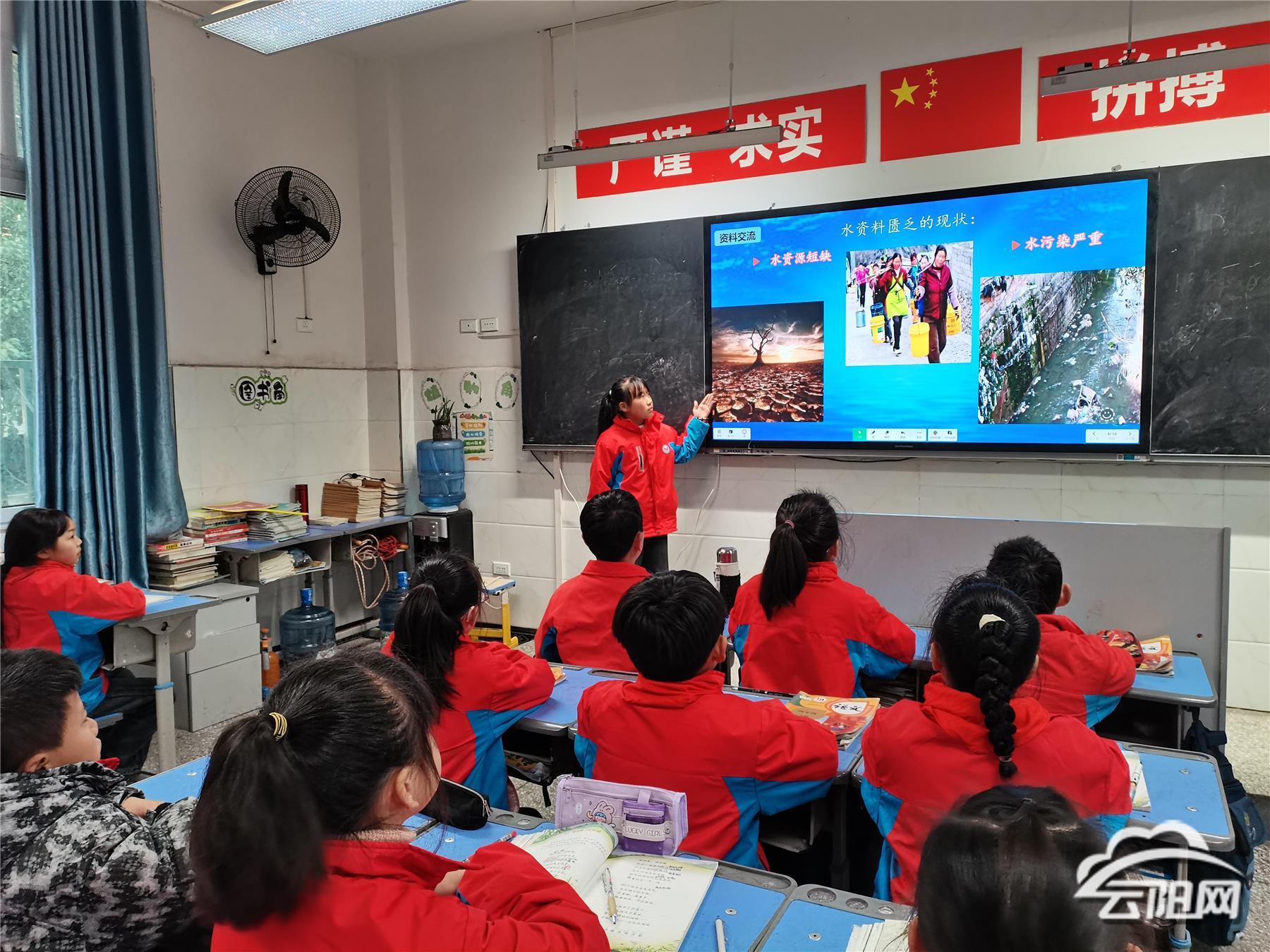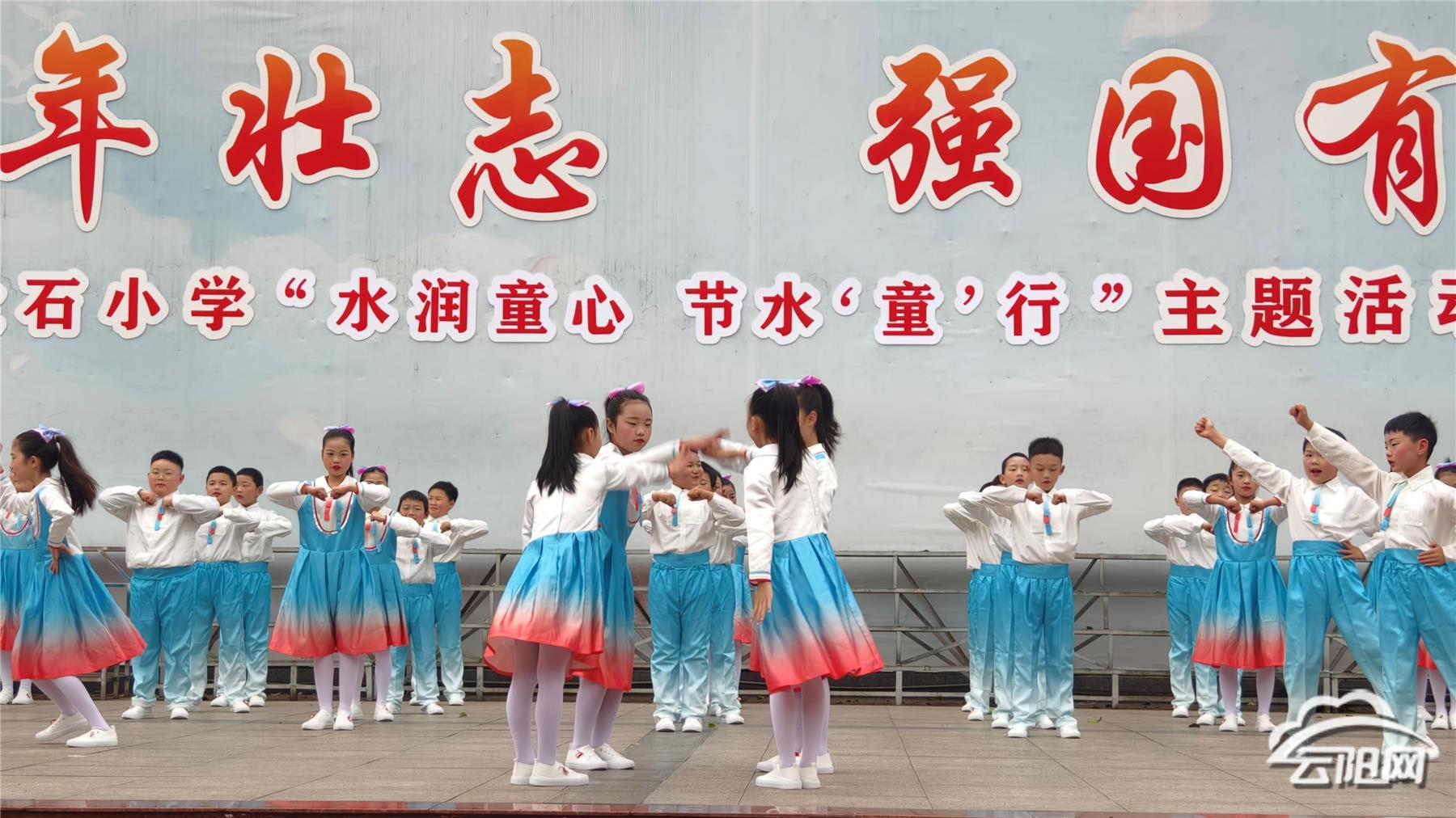 活动中,该校四(2)中队少先队员表演节目《守护绿水青山》,传递“珍惜每一滴水”的理念,号召全体师生从现在做起,从身边的小事做起,养成节约用水的好习惯。