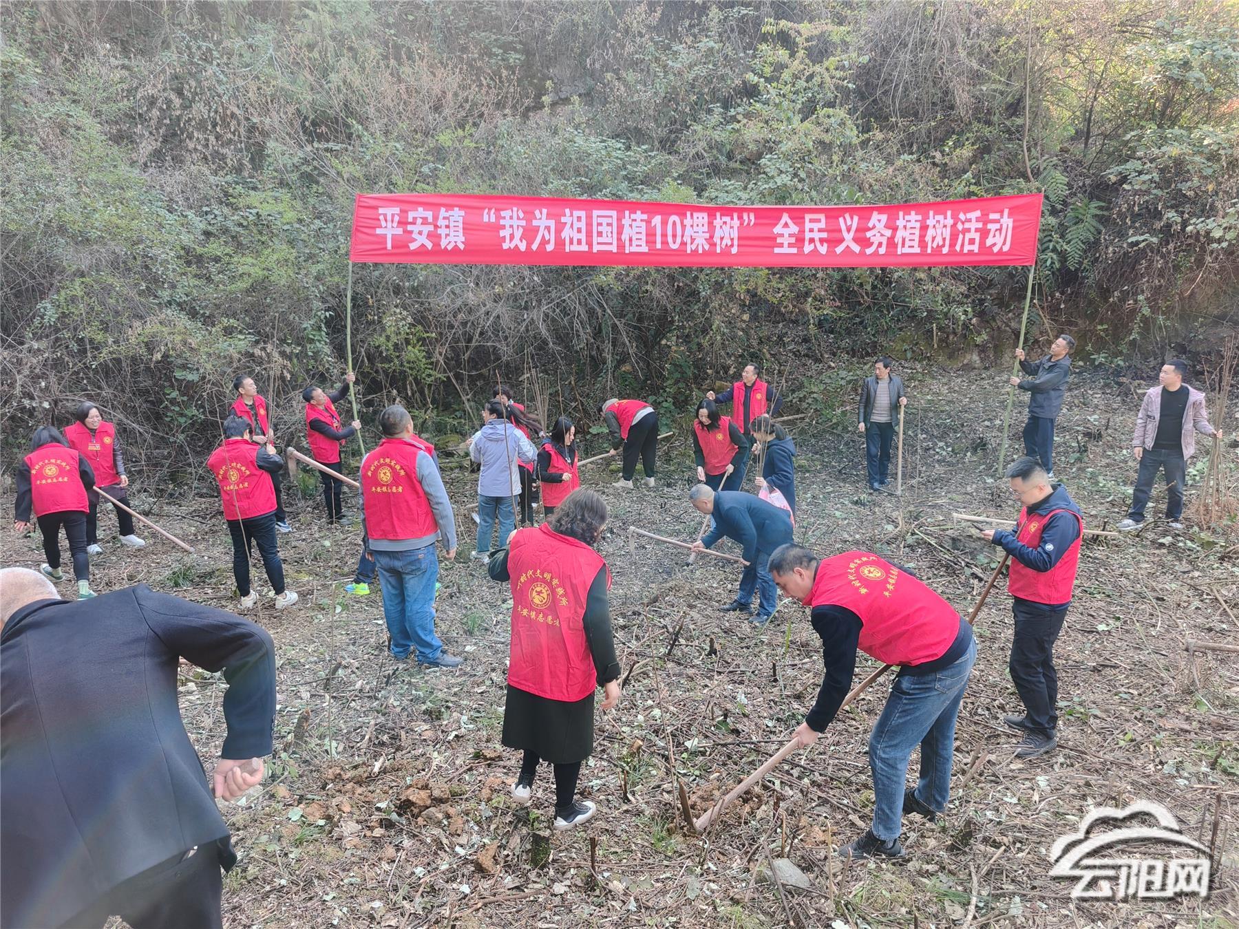 云阳网讯(通讯员 陈思安)阳春三月春风暖,植树添绿正当时。3月25日,平安镇组织开展“我为祖国植10棵树”全民义务植树活动,以实际行动倡导尊重自然、爱护自然的生态文明理念,为乡村振兴增绿添彩。