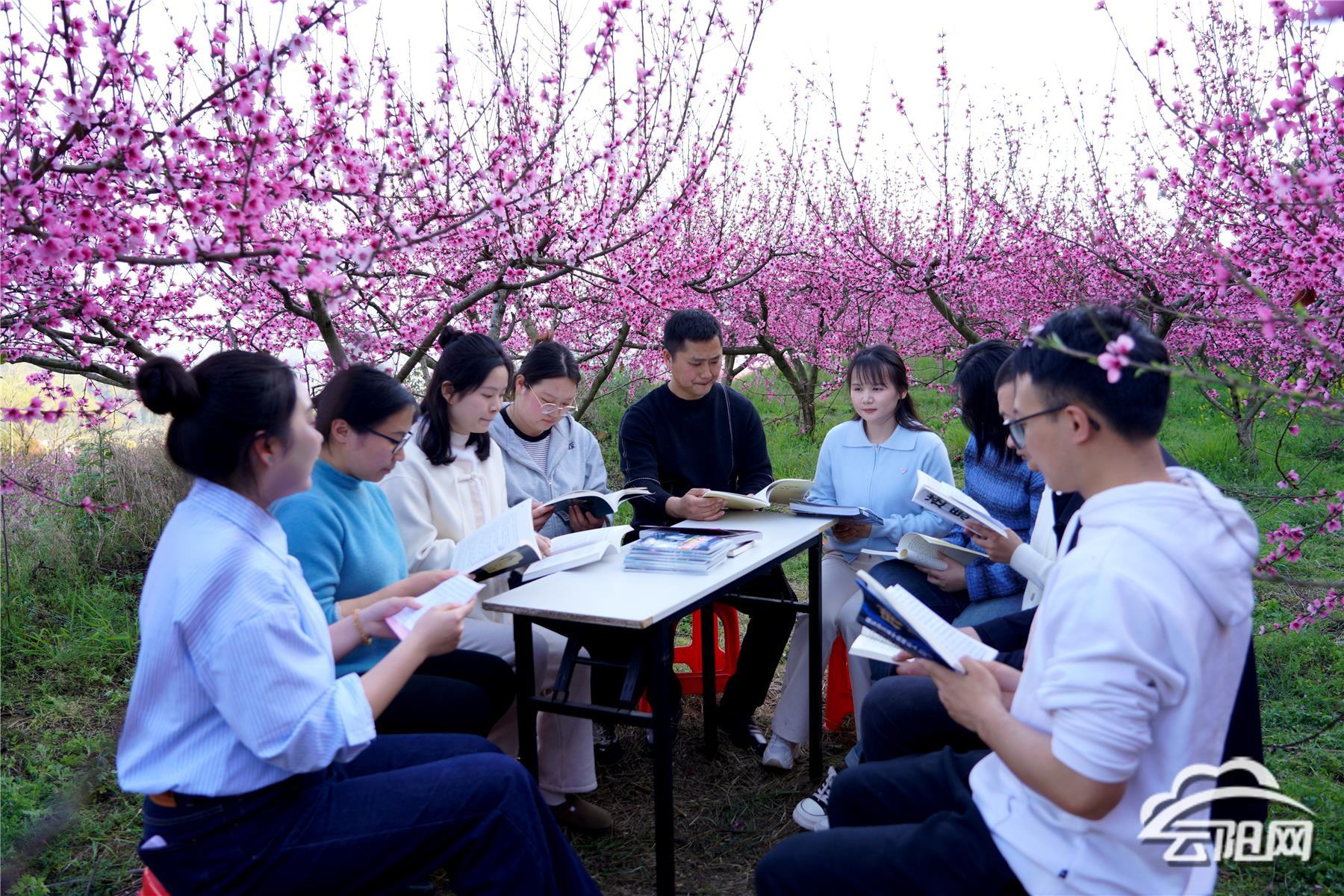 云阳网讯(记者 刘婷 赵泰庵)“我突然想起陶渊明笔下的那位武陵人:缘溪行,忘路之远近,忽逢桃花林……”三月春风拂面,桃花盛开如霞。近日,渠马镇举办“桃园读书会”,让阅读爱好者在花香与书香的交织中,开启一场与自然、文字和心灵的对话。