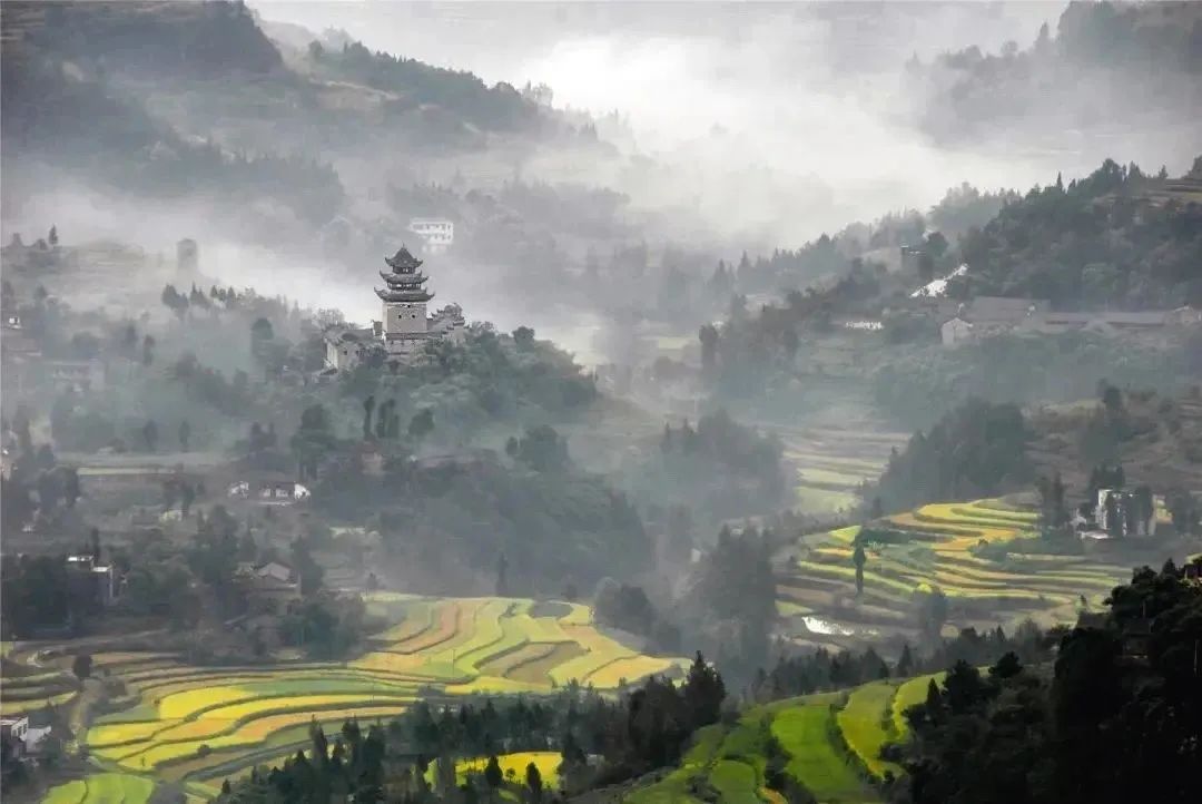 在黎明古村漫步明清石板路,指尖轻抚盐马古道的岁月痕迹;在彭氏宗祠驻足雕花窗棂前,听族老讲述 "明三暗五" 的防御智慧;到彭家老屋感受九进院落依地势蜿蜒,15个天井如星斗落于土家族吊脚楼群,每根穿斗枋暗藏 "暗八仙" 木刻,祈愿家族福寿绵延。