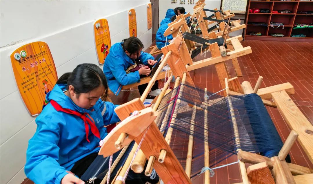 “土家织锦传统非遗技艺作为地质公园民族文化之一,我们与云阳地质公园管理事务中心进行联动,通过建立工作坊、编写校本教材、纳入地方课程和课后服务等形式,让学生传承和发扬民族文化。”该校长余晓松透露,学校将地质元素融入土家织锦课程,让传统文化在年轻一代手中焕发新生。