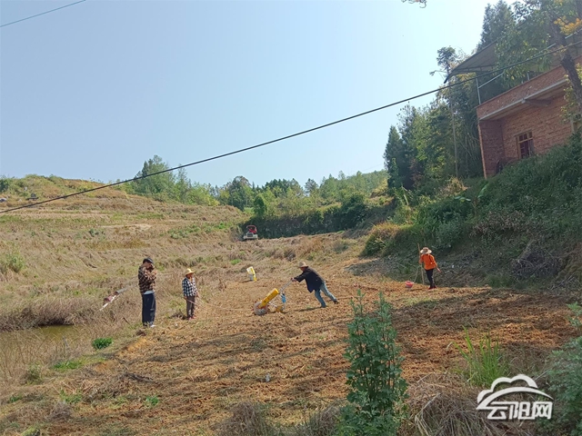 播种现场,农户们手持小型农机,忙碌地播种玉米,高阳镇农技工作人员叶庆香介绍到,他们所使用的播种机是一种手推式玉米播种机,该播种机一天正常工作9小时,能够同时施肥和播种20亩地左右,相当于15个工人的作业量,目前已组织农机具2台,预计一周左右能完成种植工作,这种半机械化设备在节省人力的同时,还提高了土地的利用率,推动粮食增产。