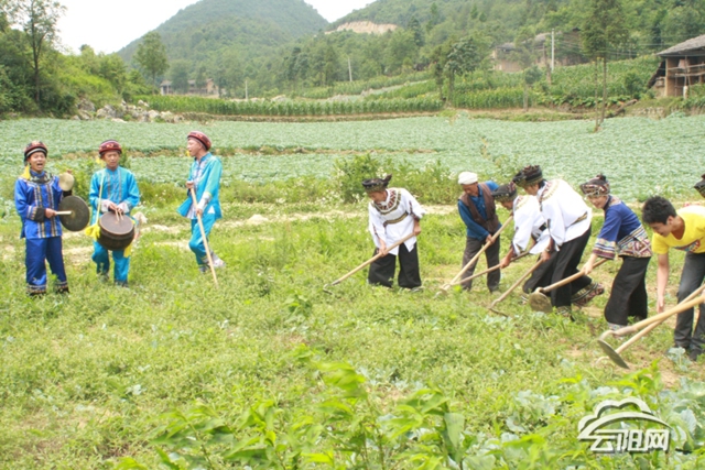 清水的山水是灵动的乐谱,土家人则是天生的乐手。在田间地头,薅草锣鼓如惊雷滚过山谷,领唱者高亢的嗓音与铿锵的锣鼓声交织,指挥着集体劳作的节奏。这种起源于古代巴人时期的古老说唱形式,将山歌、土语与戏曲熔于一炉,既有“天上明晃晃啊,地下水凼凼啊”的豪迈号子,也有“妹在田里薅杂草,哥在坡上唱山歌”的细腻情愫。70多岁的陈全海仍能敲响祖传的锣鼓,而50余岁的陈宗文作为薅草锣鼓的传承人,带领年轻一代让这项市级“非遗”在新时代焕发生机。