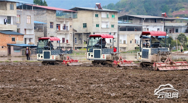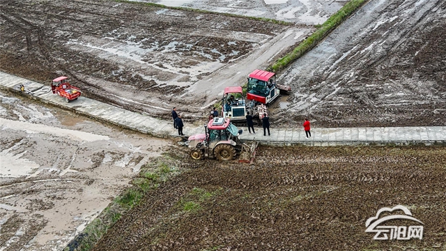 近日,在路阳镇文武村的连片水田里,5台大型耕整机正进行插秧前整地作业。种植大户唐孝斌给记者算起经济账:"承包的200亩地,过去人工打田需20天,现在托管服务5天就能完成,每亩直接省下60元成本。"这位种粮能手坦言,机械化服务让他从繁重农活中解放出来。