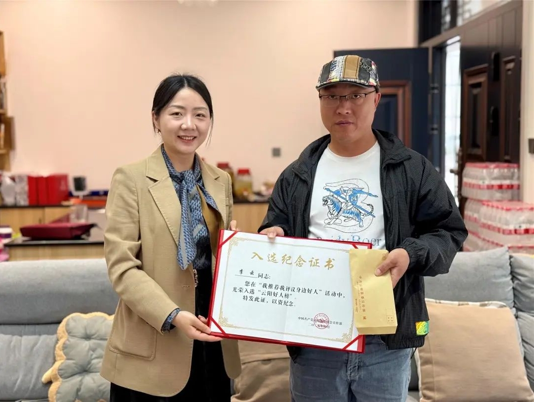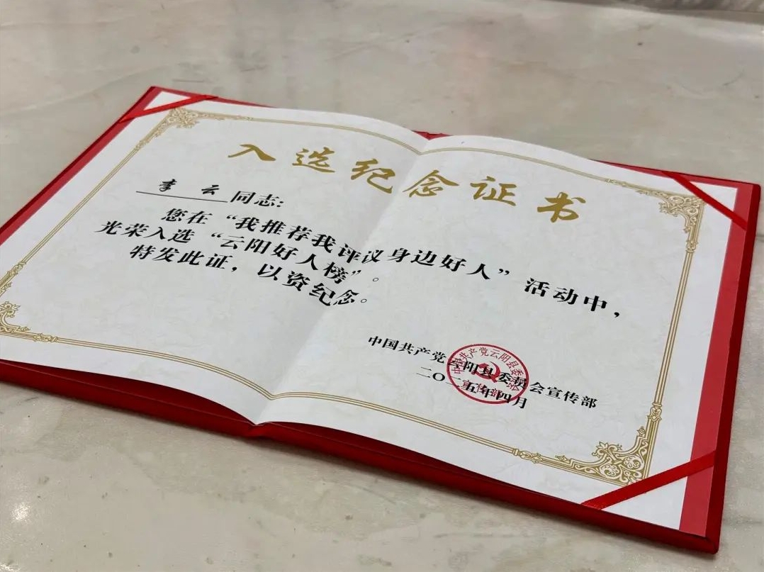 在李云家中,县新时代文明实践指导中心负责人向李云赠送了“入选‘云阳好人榜’纪念证书”及慰问金,并询问了他的工作及生活情况。该负责人表示,李云不顾个人安危挺身而出、英勇救人,充分展现了见义勇为的优秀品格和高度的社会责任感,用实际行动谱写了新时代正气之歌,为推动社会主义精神文明建设作出了贡献。