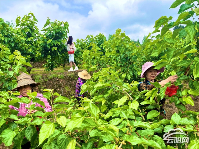 云阳网讯(记者 谭启云)眼下,正是桑葚成熟上市的季节。凤鸣镇阳凤村的鑫菊果桑种植园迎来了一年中最甜美的丰收季。枝头紫红饱满的桑葚果挂满翠叶间,在阳光下泛着晶莹的光泽,空气中弥漫着清甜的果香,吸引众多游客慕名前来,体验田园采摘的乐趣。