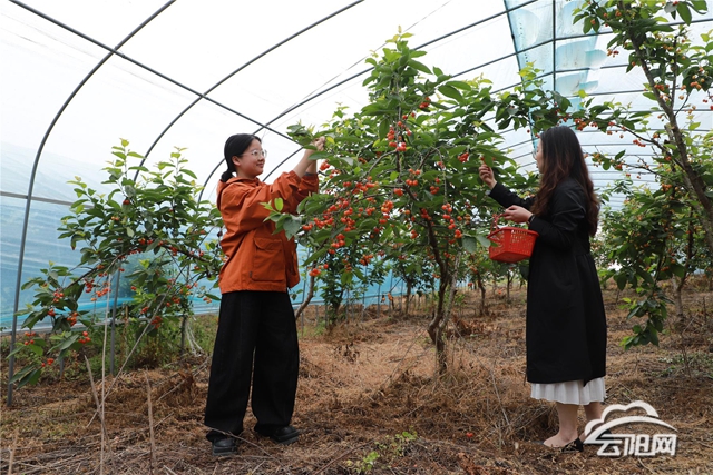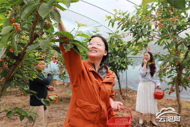 云阳网讯(记者 陈慧)四月春光正好,近日,宝坪镇地坪村樱桃基地迎来丰收季。50亩红妃樱桃树硕果累累,晶莹剔透的果实缀满枝头,吸引众多游客慕名而来。
